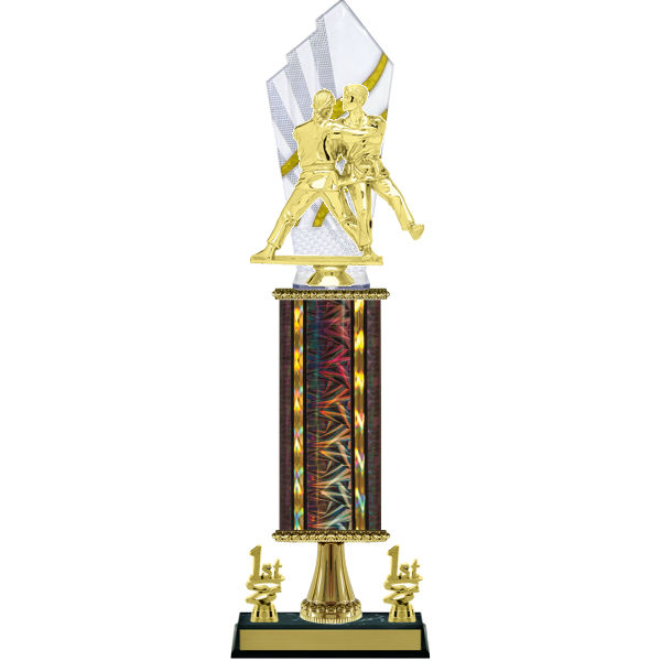 Stylish figure on column & trophy base with diamond backer, accented riser and trim.