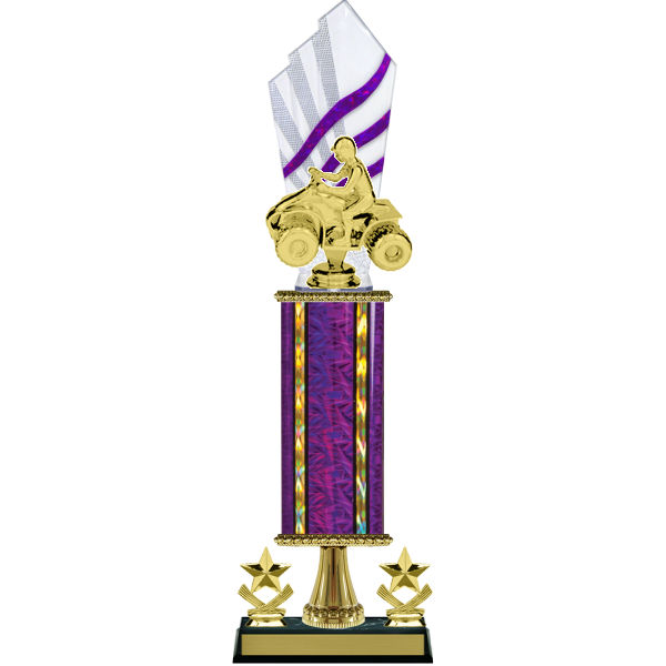 Stylish figure on column & trophy base with diamond backer, accented riser and trim.
