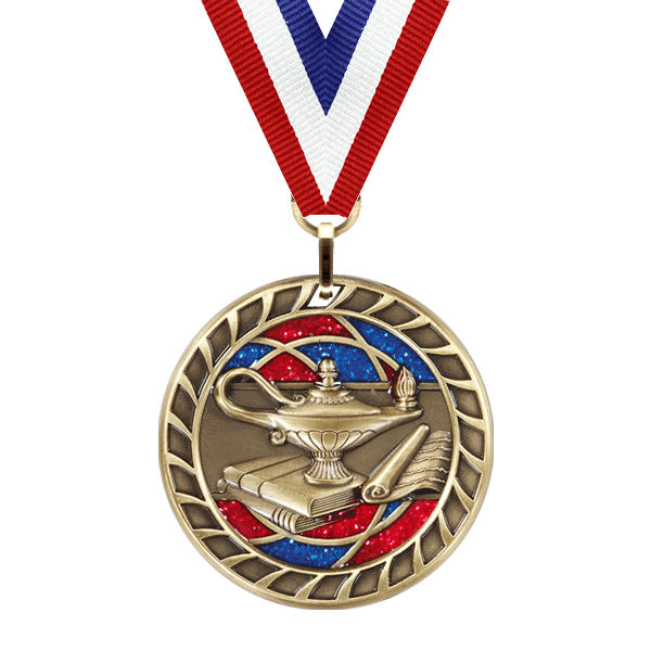 2-1/2"die cast medal with Translucent Color Fill and Glitter. Also included with each medal