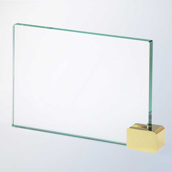 Beautiful jade glass sparkles with a subtle shade of green. Award comes with brass rectangular stand. Classic and modern elements are combined to create this timeless design.