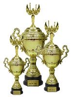 Honor your champions with these beautiful high quality trophy cups. Plastic cups feature a gold finish and are mounted on a black resin base. Available in three different sizes. The inscription is on the base only as the cups themselves are not engravable.