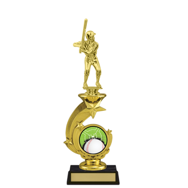 Stylish figure on accented star theme riser & trophy base with mylar.