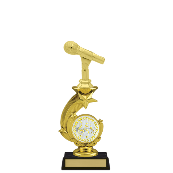 Stylish figure on accented star theme riser & trophy base with mylar.