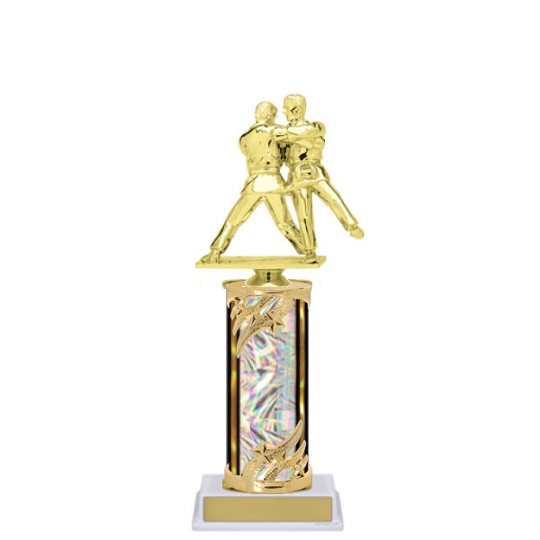 Stylish figure on Column & trophy base with gold accented stars wrapped around column.