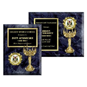 This plaque features a selectable figure, finish, activity insert, holder and is available in