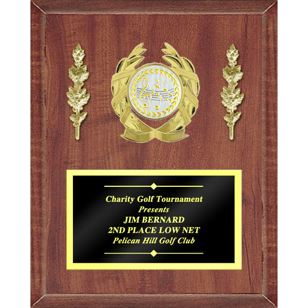 This 8" x 10" plaque features a great veneer finish with a wreath of your choosing and activity insert with trims.