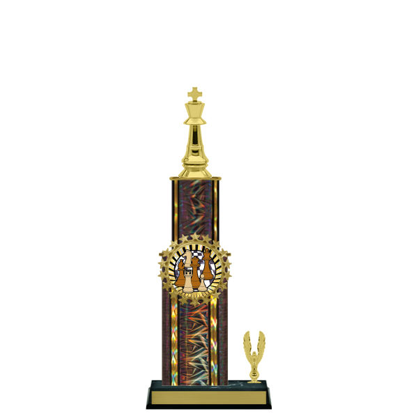 Stylish figure on two tier column structure & trophy base with mylar and trim.