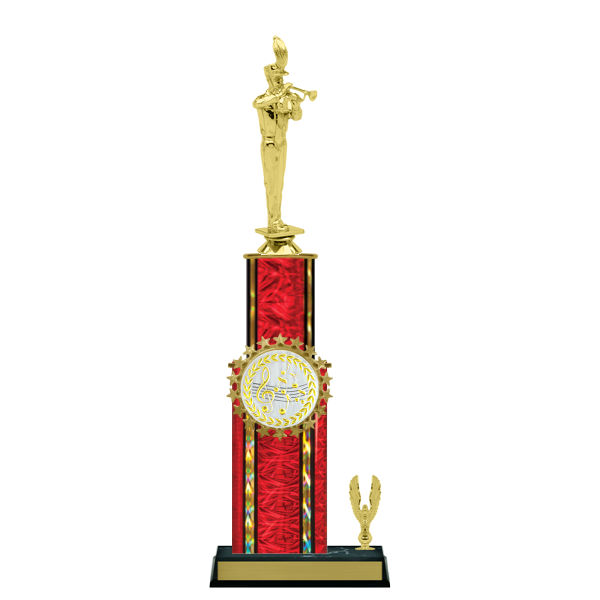 Stylish figure on two tier column structure & trophy base with mylar and trim.