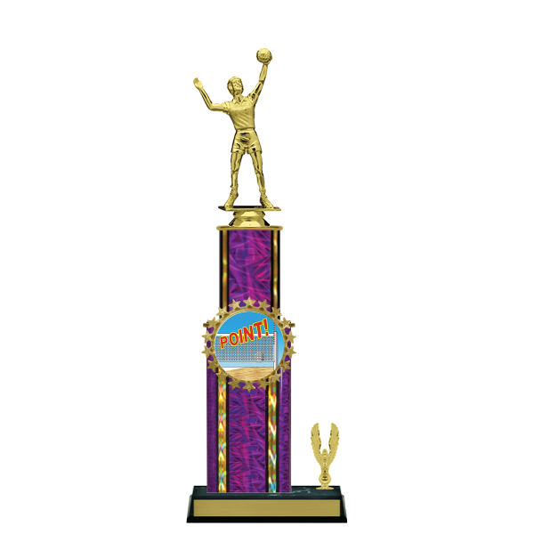 Stylish figure on two tier column structure & trophy base with mylar and trim.