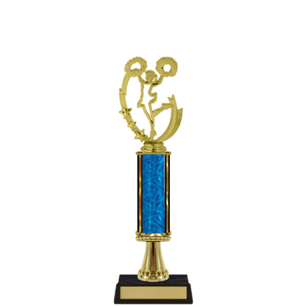 This classic trophy with swirl accent riser is available in 4 heights and you can select your own figure, column and base color.