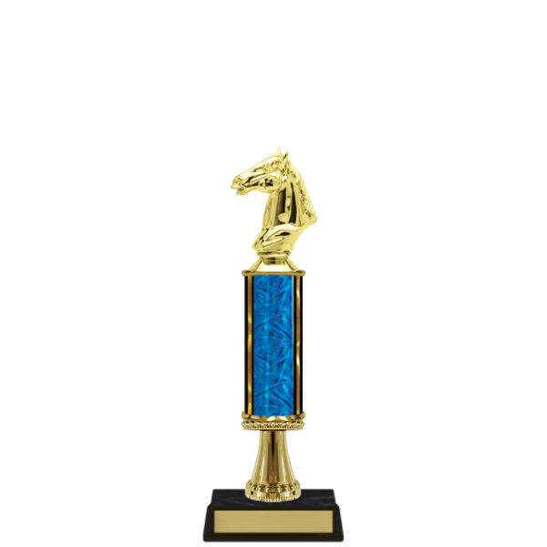 This classic trophy with swirl accent riser is available in 4 heights and you can select your own figure, column and base color.