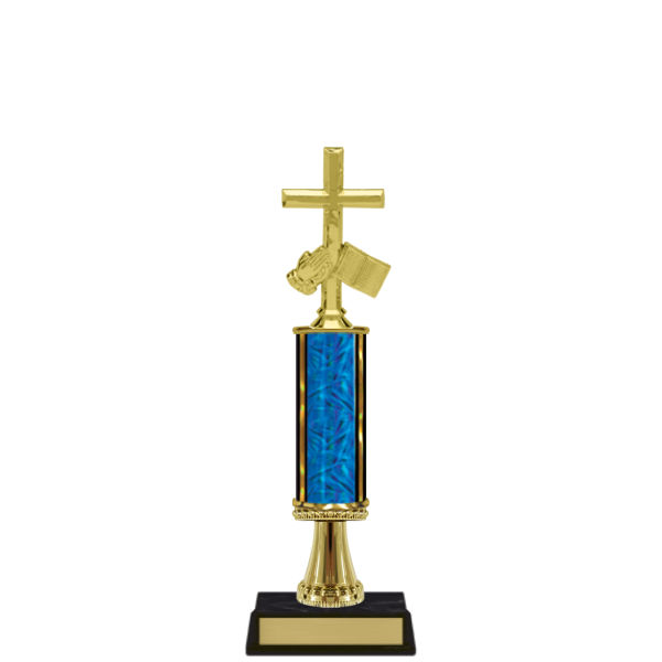 This classic trophy with swirl accent riser is available in 4 heights and you can select your own figure, column and base color.