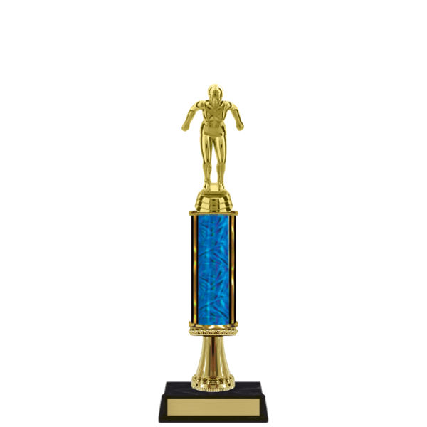 This classic trophy with swirl accent riser is available in 4 heights and you can select your own figure, column and base color.