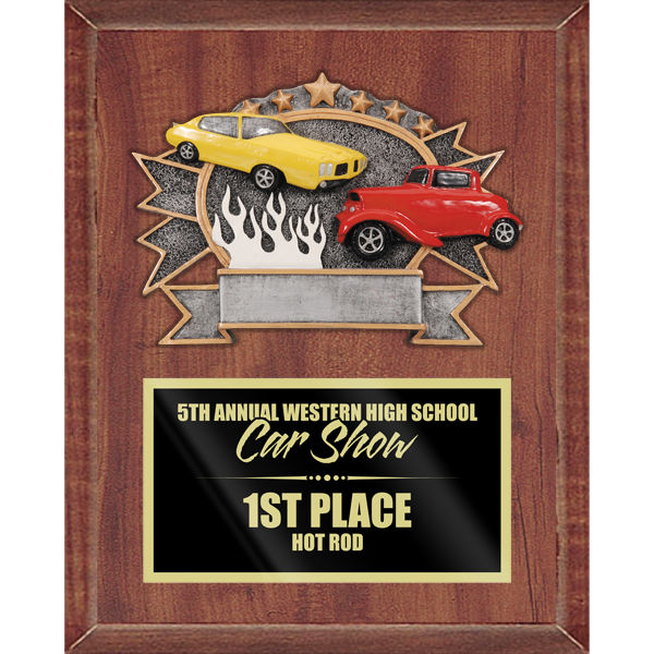 Car show plaques are a great way to recognize your event winners and proud sponsors. This award presents a detailed resin classic car theme with a custom engraved plate. A champion would proudly display this award at their next car show event.