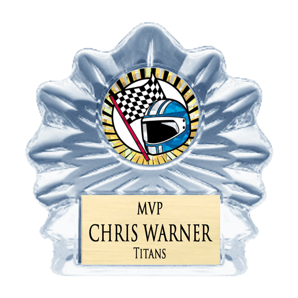 This clear flame sculpted ice trophy with selectable insert is perfect for recognizing the achiever.