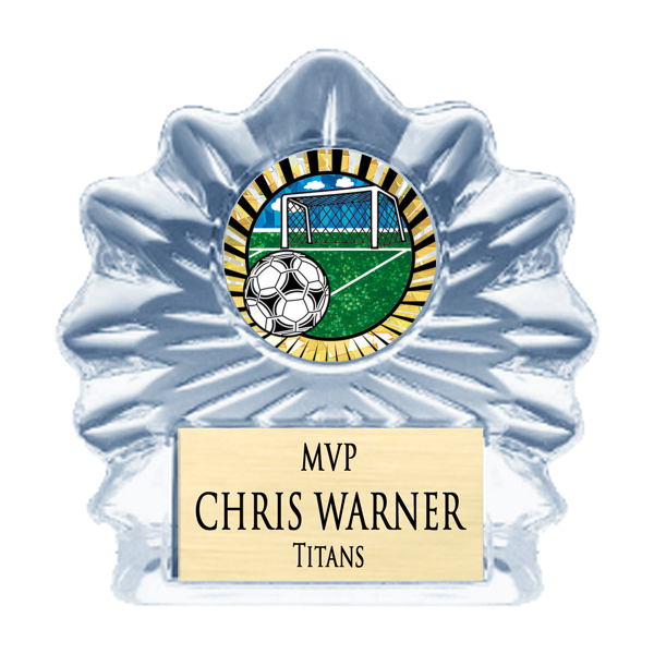 This clear flame sculpted ice trophy with selectable insert is perfect for recognizing the achiever.