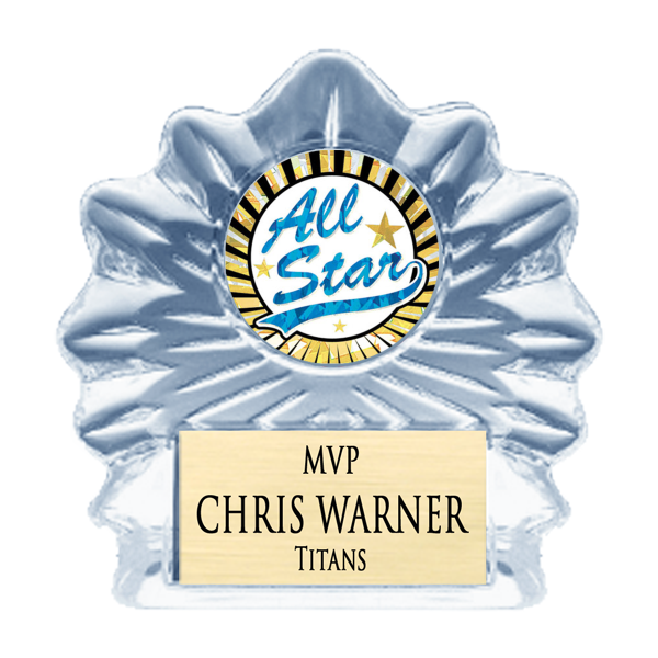 This clear flame sculpted ice trophy with selectable insert is perfect for recognizing the achiever.