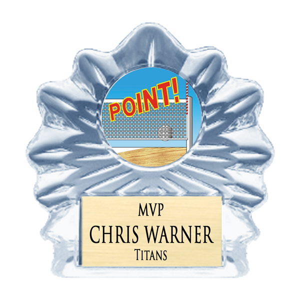 This clear flame sculpted ice trophy with selectable insert is perfect for recognizing the achiever.