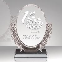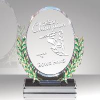 This clear oval acrylic award is available in three different color leafs gold, clear and green.