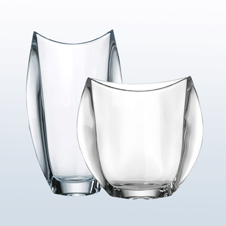 Hand-made Crystalite vase features wide arches for the edges allowing maximum space for customization. Its flawless curves give off the impression of an art sculpture.
