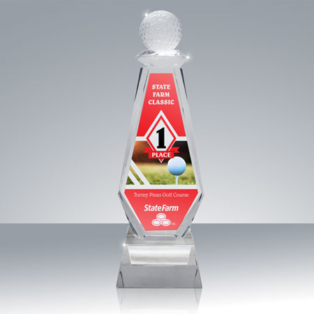 Optic Crystal tower on clear base topped with crystal diamond and golfball.