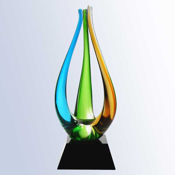The Multi color arms of the Tri-Pod come together at the peak of this beautiful sculpture award.