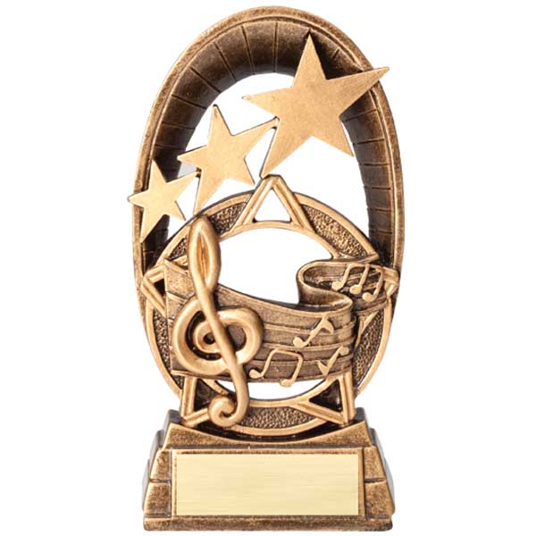 This Sculptured Resin features a bronze finish with radiant rising star display.