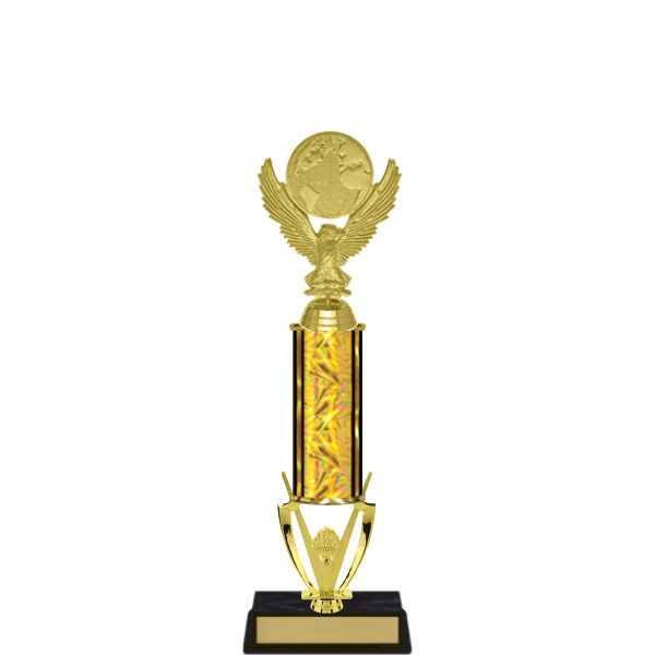 Classic trophy with gold winged accent riser.