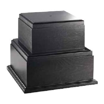 This 9.5" Tiered Wood Base comes in a black finish. It is a rich sculptured base that will enhance any cup or bowl.
