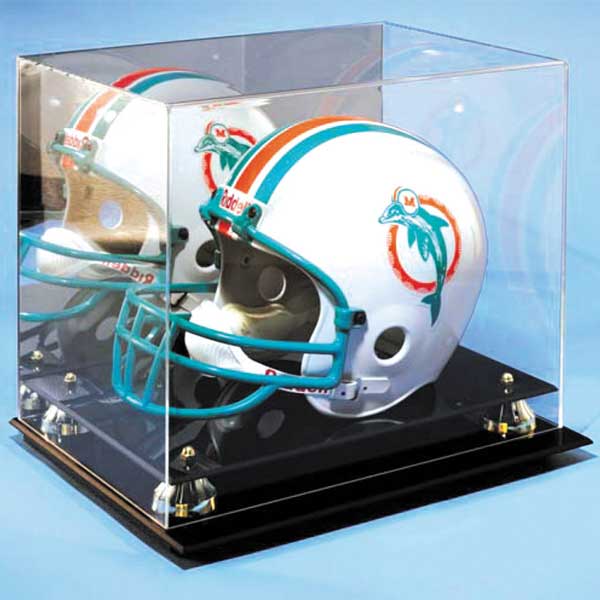 This Clear Acrylic Helmet display case features a reflective back and pedestal and comes with a personalized plate.