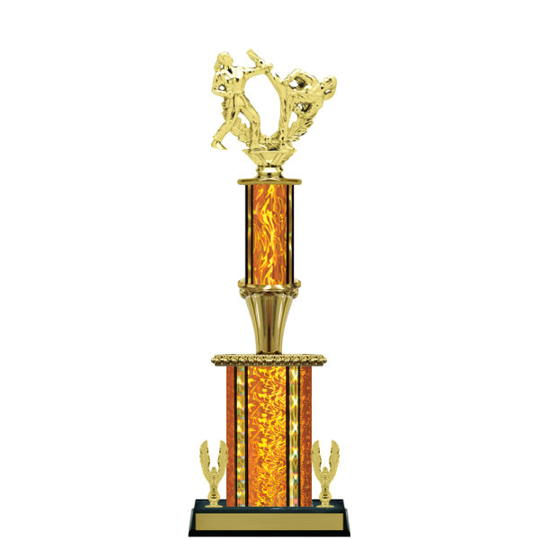Stylish figure on two tier column structure & trophy base with accented riser and trim.