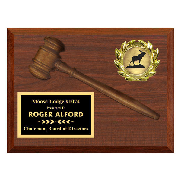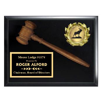 Distinguished Gavel Plaque features a 10" walnut gavel and is available in 2 sizes.