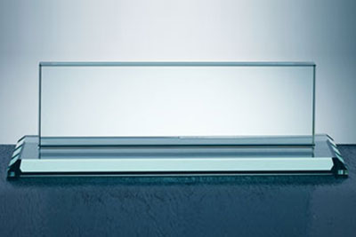 This jade glass nameplate features classic, prestigious design. Etched with your inscription.
