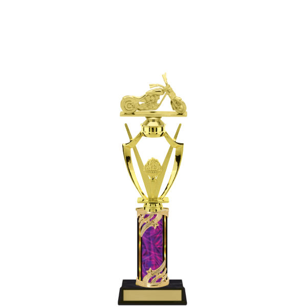 Stylish figure on accented riser, column & trophy base with gold accented stars wrapped around column.