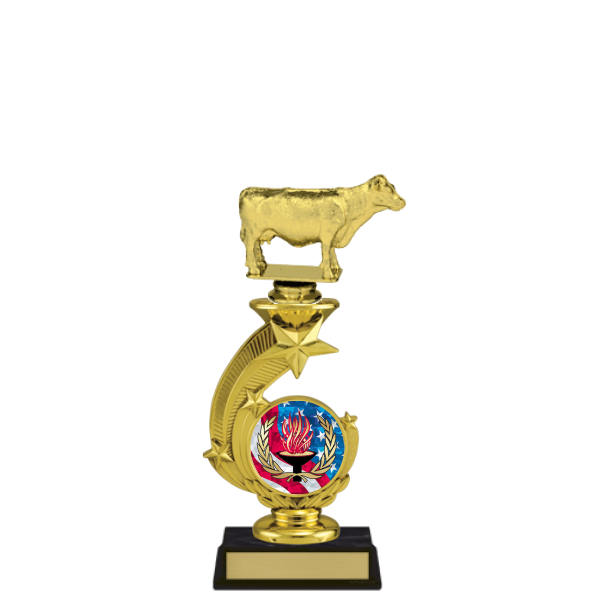 Stylish figure on accented star theme riser & trophy base with mylar.