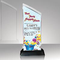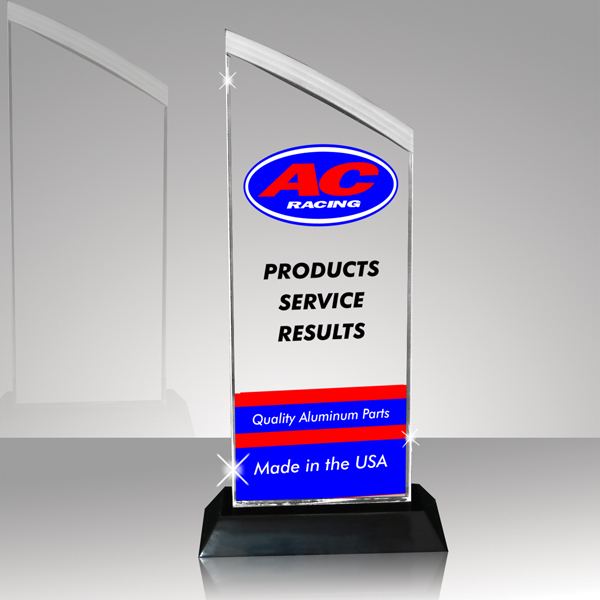 Full Color Jumbo Deco Acrylic awards are perfect for any memorable event. Clear 3/8" thick acrylic with black beveled base.