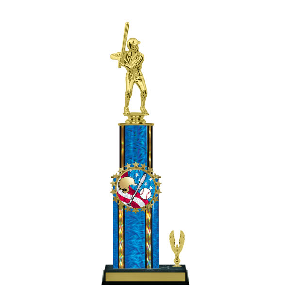 Stylish figure on two tier column structure & trophy base with mylar and trim.