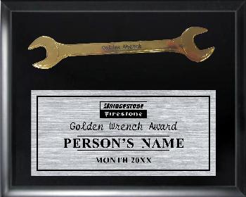 Distinguished Rosewood Plaque features a 7-3/4" Gold Plated Cast Metal Wrench.