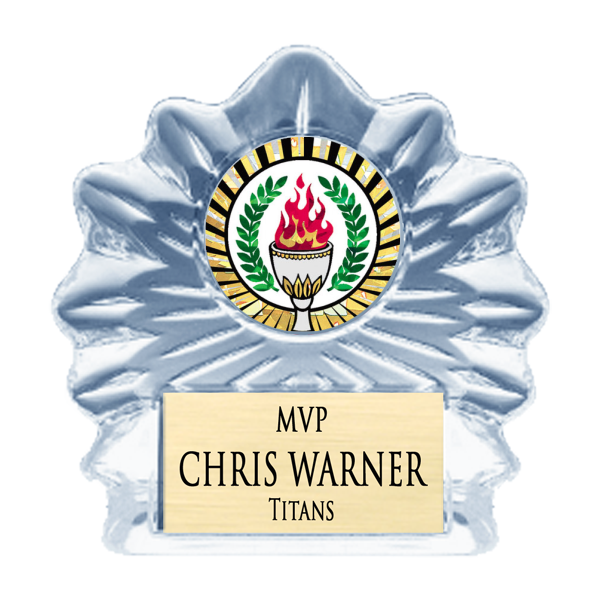 This clear flame sculpted ice trophy with selectable insert is perfect for recognizing the achiever.