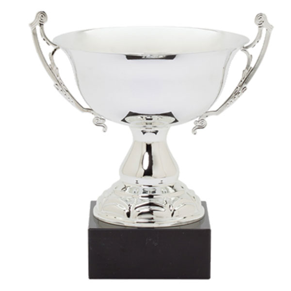 This high quality silver metal cup features a solid black marble base. Included with your order is a personalized inscribed plate.