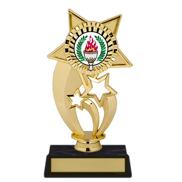 Stylish star theme figure on trophy base with mylar.