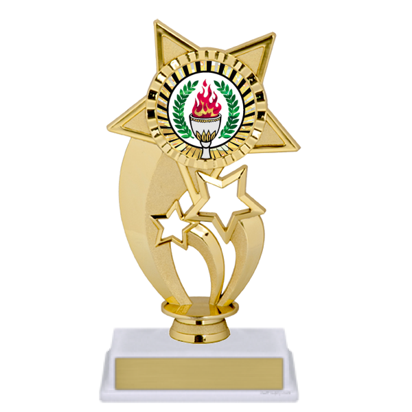 Stylish star theme figure on trophy base with mylar.