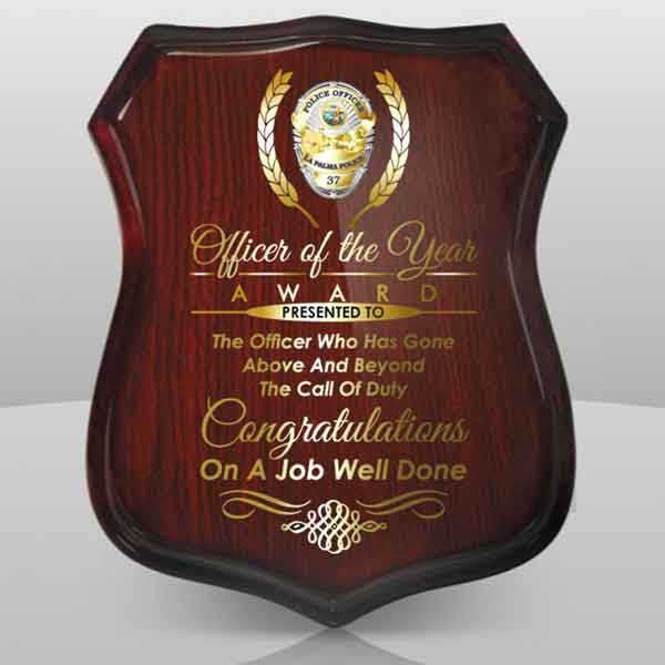 This Rosewood Shield Plaque features a full color digitally printed layout.
