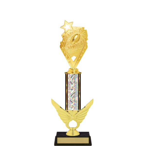 Classic trophy with gold winged accent riser.