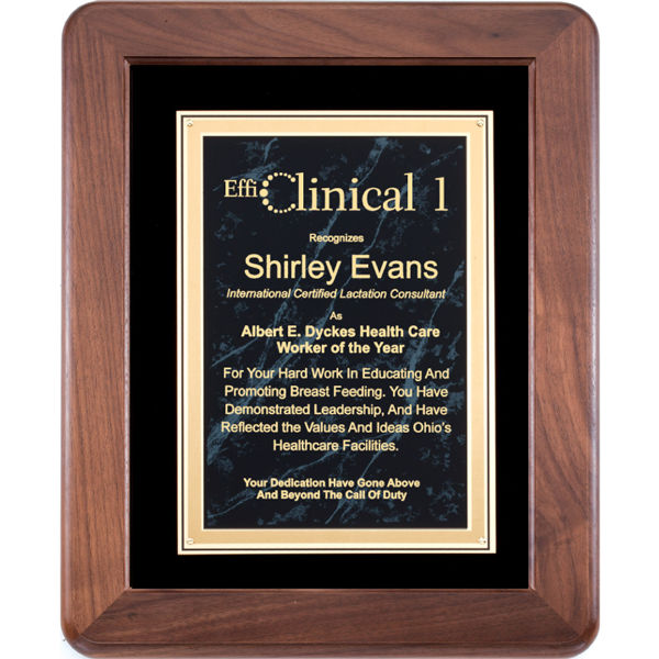 This unique notched plaque displays a notched brass plate with decorative boarder.