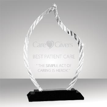 This faceted optical crystal creates a stylish presentation with a layered faceted border.