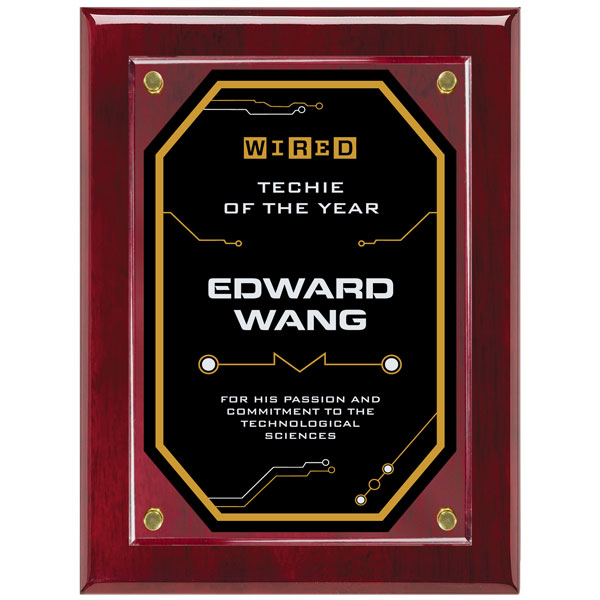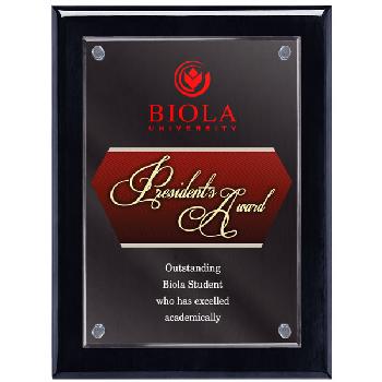 This Professionally Styled Pianowood Plaque features a Raised Acrylic Face accented with post mounts.