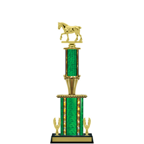 Stylish figure on two tier column structure & trophy base with accented riser and trim.