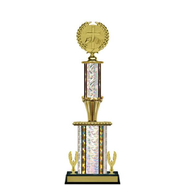 Stylish figure on two tier column structure & trophy base with accented riser and trim.