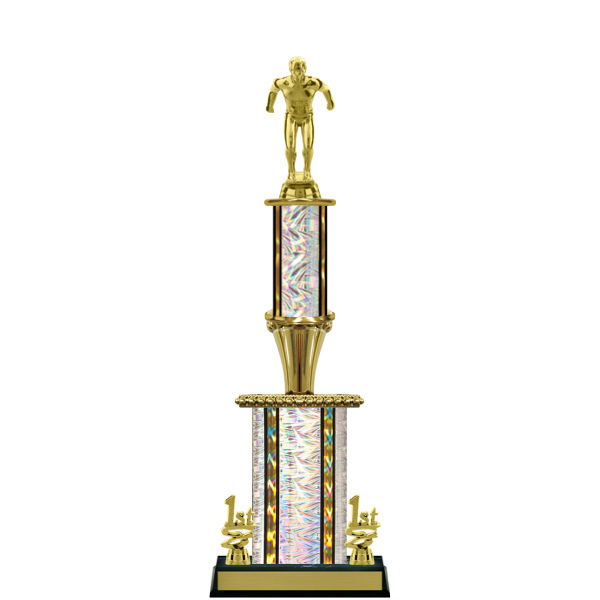 Stylish figure on two tier column structure & trophy base with accented riser and trim.